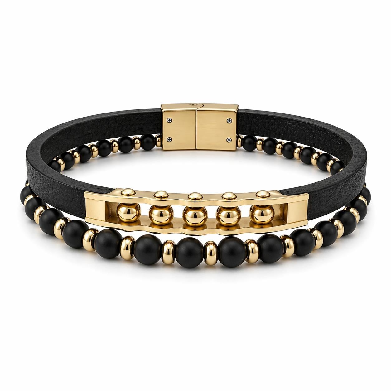 Welch Gold Çelik Boncuklu Çoklu Deri Erkek Bileklik (2100-H3540GOLD)