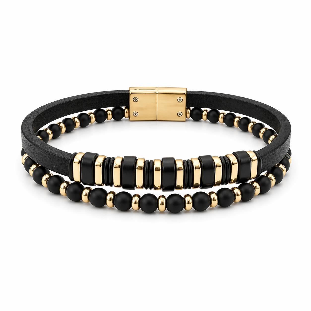 Welch Gold Çelik Boncuklu Çoklu Deri Erkek Bileklik (2100-H3541GOLD)