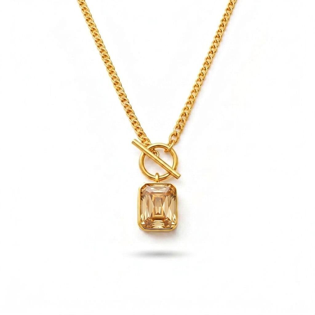 Welch Altın Kaplama Çelik Taşlı Kare Kolye (6211-2442GOLDCHAMPAGNE)